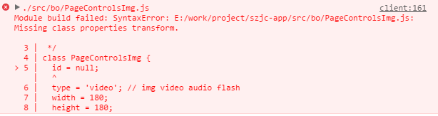重新运行启动服务即可。它的实际问题,就是没有配置 transform-class-properties 这款插件。类似的,如果你项目中需要使用 rest运算 和 spread扩展符,你也可以再配置 transform-object-rest-spread。