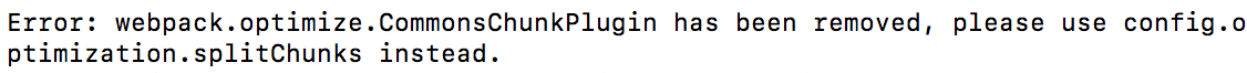 当你尝试在 webpack4.x 中使用 CommonsChunkPlugin,在命令面板会出现报错,并提示我们用 optimization.splitChunks: