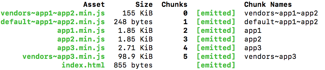 可以看到,打包后的业务文件(app1、app2、app3)体积都变小了。
